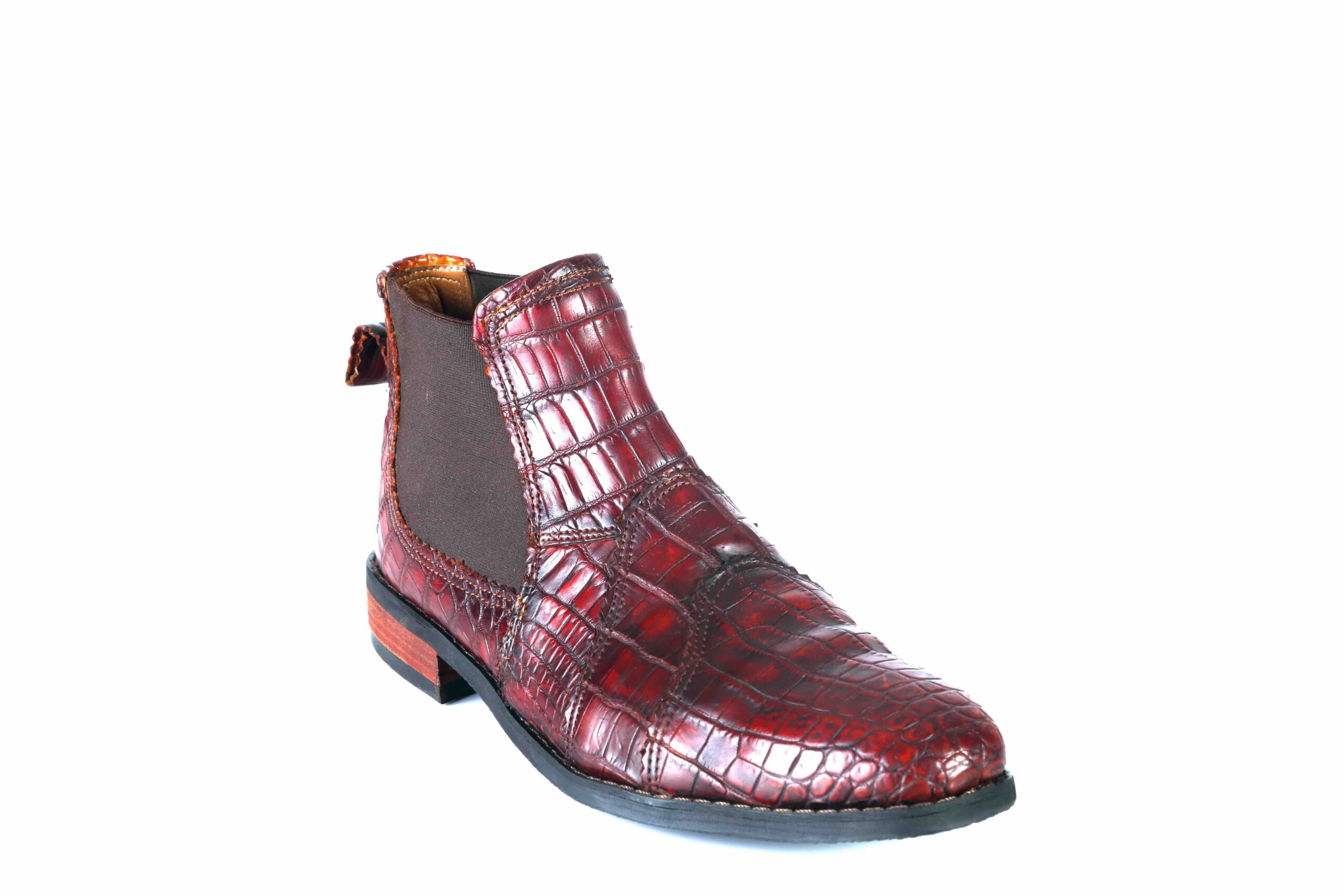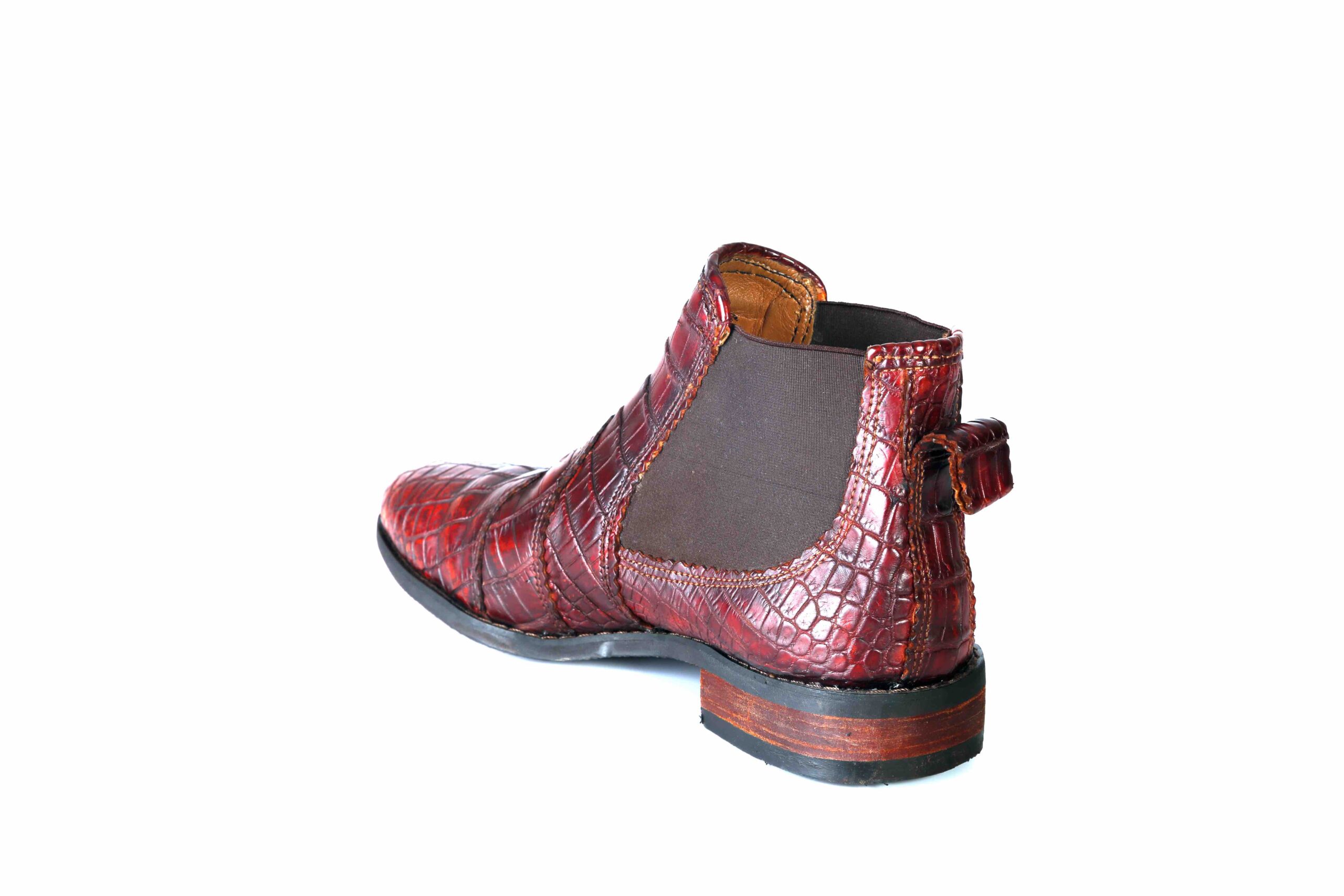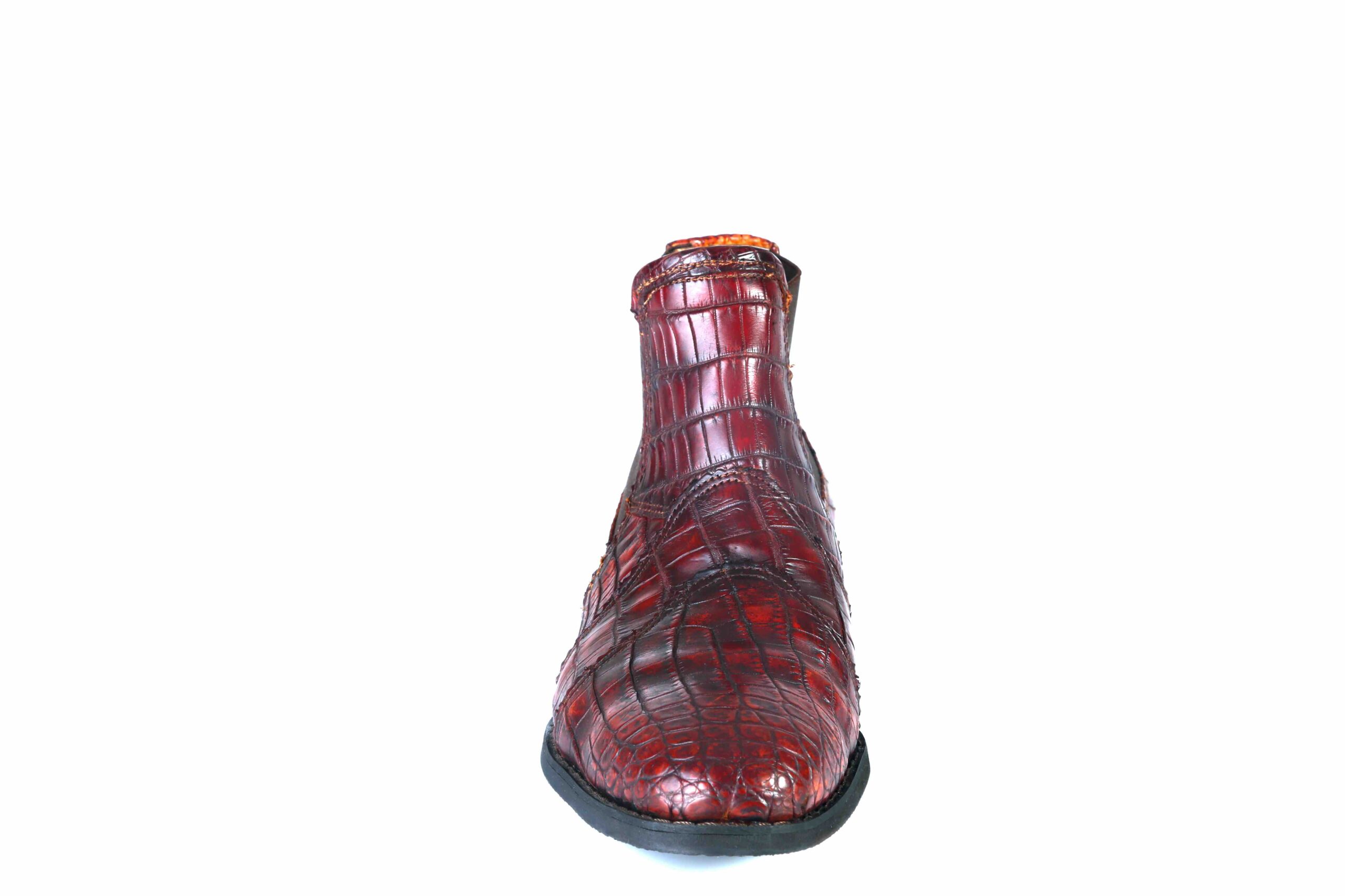 Handcrafted genuine antique red crocodile skin boot with leather sole
