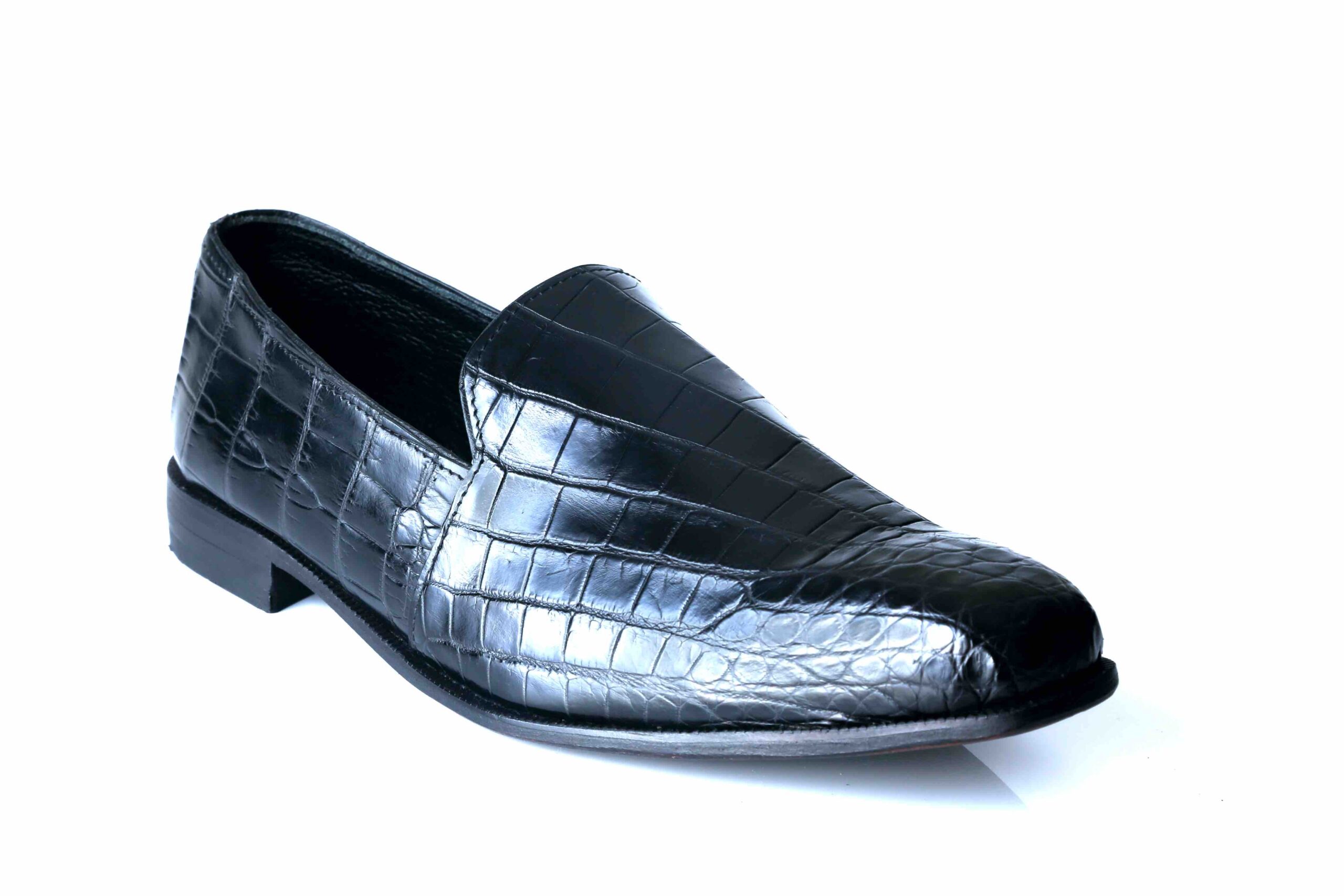 Handcrafted crocodile print genuine leather shoe with leather sole